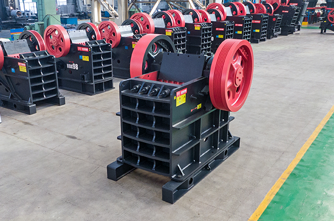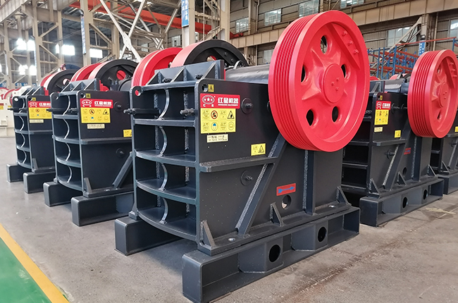 電動機(jī)驅(qū)動皮帶和皮帶輪,通過偏心軸使動顎上下運動,當(dāng)動顎上升時,肘板與動顎間夾角變大,從而推動動顎板向固定顎板接近,與次同時,物料被壓碎或劈碎,達(dá)到破碎的目的;當(dāng)動顎下行時,肘板與動顎夾角變小,動顎板在拉桿、彈簧的作用下,離開固定顎板,此時已破碎物料從破碎腔下口排出。隨著電動機(jī)連續(xù)轉(zhuǎn)動而破碎機(jī)動顎作周期運動壓碎和排泄物料,實現(xiàn)批量生產(chǎn)。