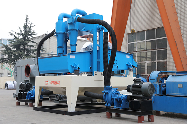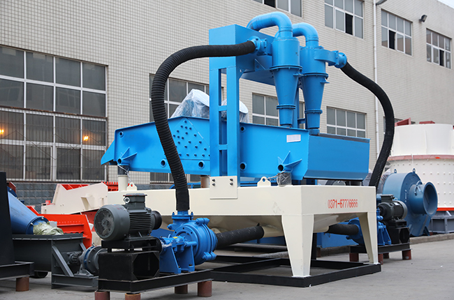 細(xì)沙回收機(jī)通過(guò)渣漿泵將濃度≤40%的泥漿注入水力旋流分離器進(jìn)行分離,分離出的粗粒部分進(jìn)入脫水篩脫水回收。最大限度的回收0.075mm以上的材料,去除0.075mm以下的污泥和黏土,可以與現(xiàn)有生產(chǎn)線上的洗砂機(jī)配套使用,也可以單獨(dú)使用,提升資源利用率, 實(shí)現(xiàn)收益最大化。分離出的粗粒部分進(jìn)入脫水篩脫水回收。最大限度的回收0.075mm以上的材料,去除0.075mm以下的污泥和黏土,